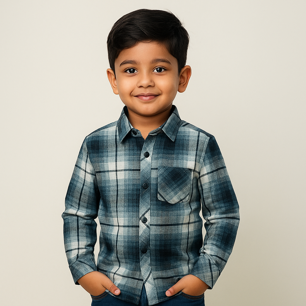 This boys’ casual shirt is made from 100% soft cotton, ensuring comfort throughout the day. Designed in a trendy navy blue shade, it features a modern cut, breathable fabric, and durable stitching. Perfect for daily wear, family outings, or school functions. Pair it with jeans or trousers for a cool look.