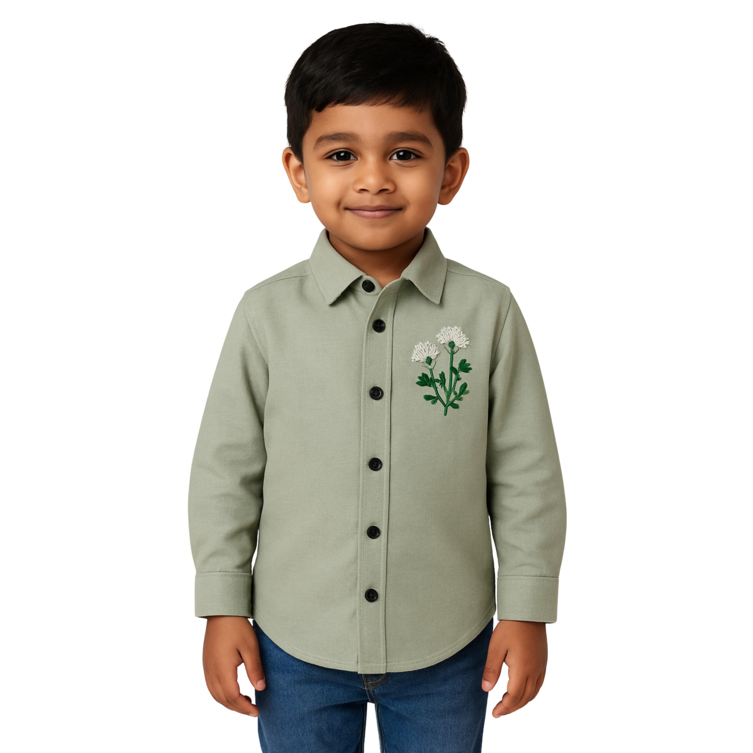 Boys’ Floral Embroidered Cotton Shirt – Casual & Stylish